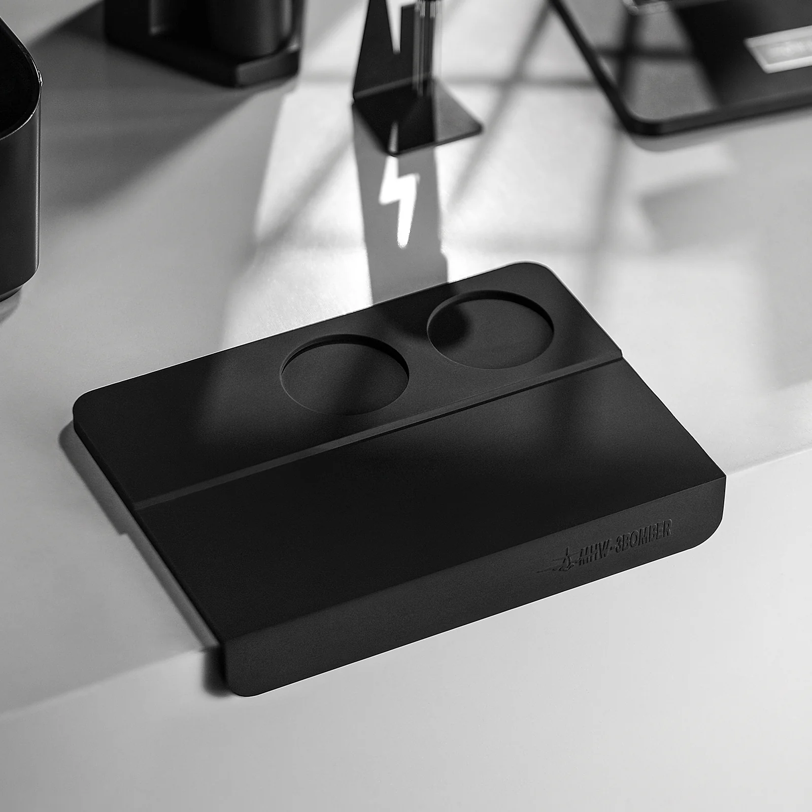 Proteja su encimera y garantice la estabilidad al compactar el café en el portafiltro con este tamping mat de silicona ingeniosamente doblada.